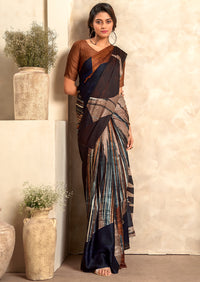 Brown Woven Digital Printed Crepe Silk Saree