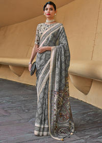 Dove Grey Woven handloom Chanderi Cotton Saree