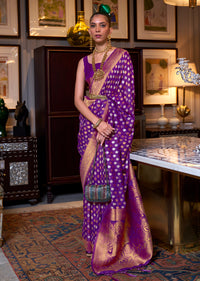 PURPLE COPPER ZARI WOVEN PURE KHADDI GEORGETTE BANARASI SAREE