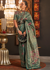 Teal Blue Zari Woven Pure Handloom Kanjivaram Silk Saree