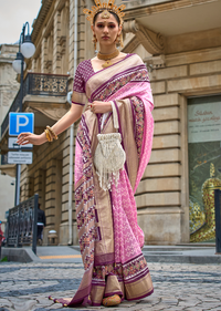 Carnation Pink Woven Royal Traditional Patola Silk Saree