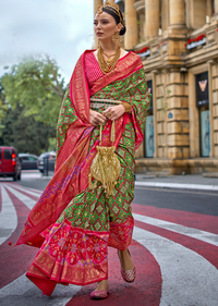 Green & Red Woven Royal Traditional Patola Silk Saree