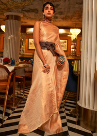 Golden Beige Zari Woven Pure Handloom Satin Kanjivaram Silk Saree