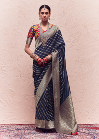 NAVY BLUE PURE CREPE SILK DESIGNER KHADDI BANARASI SAREE