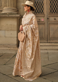Beige Woven Handloom Chikankari Lucknowi Organza Silk Saree