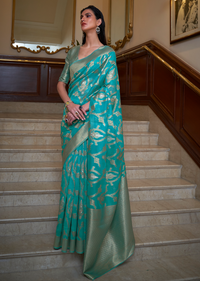 CYAN BLUE ZARI WOVEN HANDLOOM ORGANZA SILK SAREE