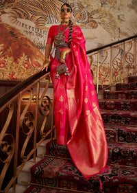 Red Zari Woven Two Tone Chinon Kanjivaram Silk Saree