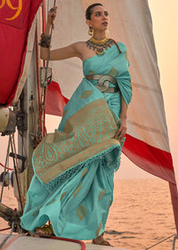Sky Blue Woven Pure Handloom Kanjivaram Satin Silk Saree