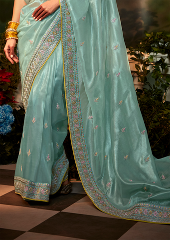 CELESTE BLUE DESIGNER PURE ORGANZA SILK SAREE