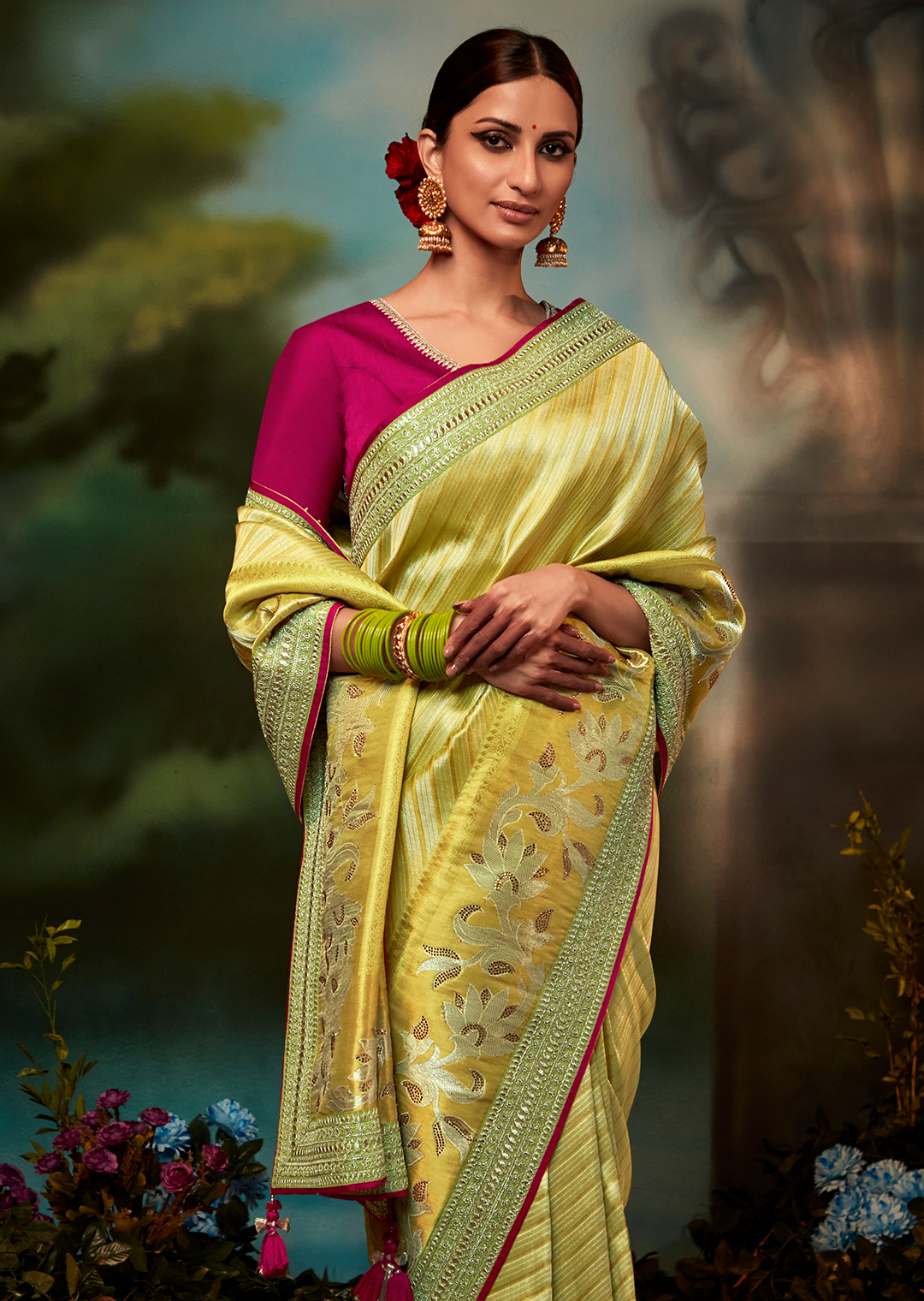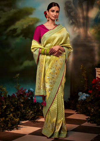 LIME GREEN HEAVY EMBROIDERED DESIGNER KANJIVARAM SILK SAREE