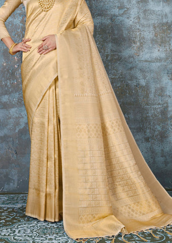 Pearl White Gold Hand Woven Kanjivaram Silk Saree Sale