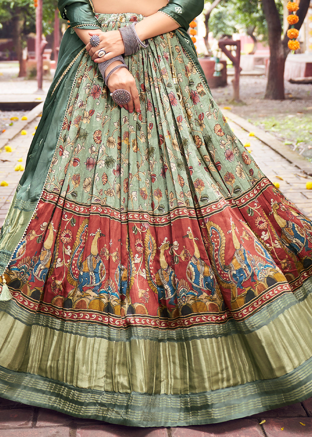 TEA GREEN WOVEN LAGDI PATTA GAJJI SILK LEHENGA WITH HEAVY HANDWORKED BLOUSE Sale
